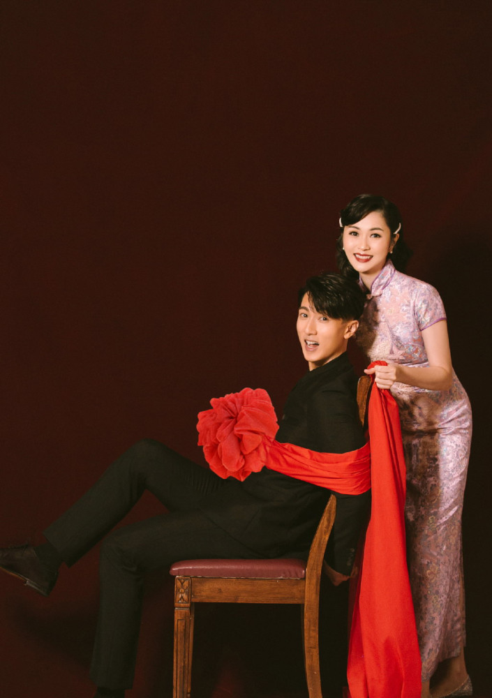 在这组国风照片中,吴尊换上一套黑色的中山装,显得威武而又不失儒雅,搭配短发,呈现出东方男性特有的内敛气质。林丽吟则是穿了一袭旗袍,淡淡的粉紫色,不仅秀出高贵优雅的气质,还不失女性的柔情和浪漫。两人撑着一把红伞下的,妥妥的一双璧人。